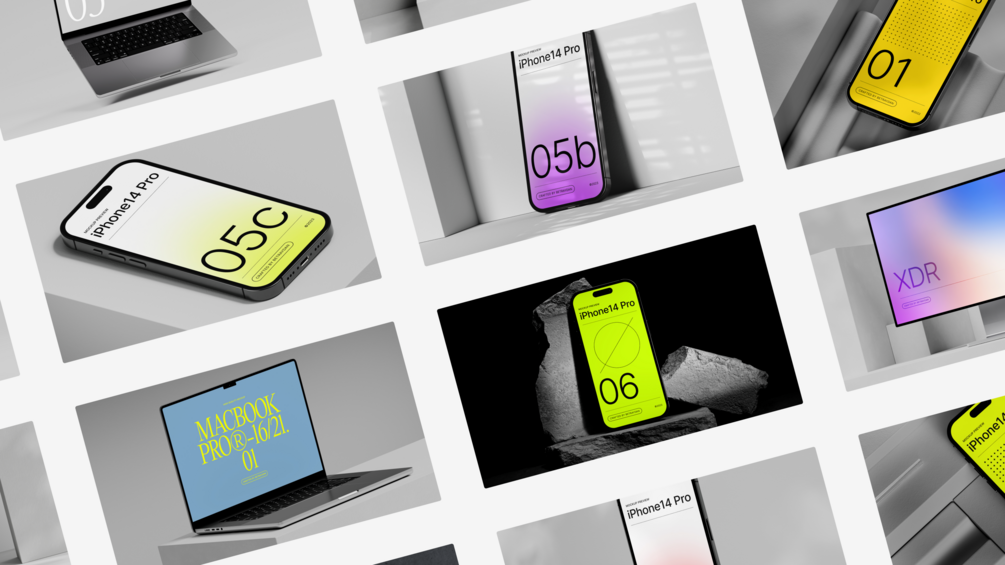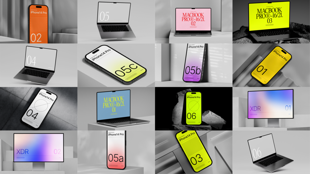 It's the ultimate pack with a mixture of various iPhone 14 Pro, Macbook Pro and Pro Display XDR Mockups.